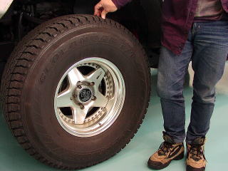 このスタッドレスは一番大きなサイズだそうで その大きさ、なんと35インチ!(ヨコハマ製) ひぇぇ〜〜〜 |
