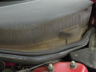 ![]() ボンネット中央の最もダメージの大きい部分 |