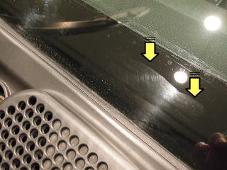 ![]() フロントガラス下部には 撥水剤の拭き残しなのか白い帯になった部分があります |