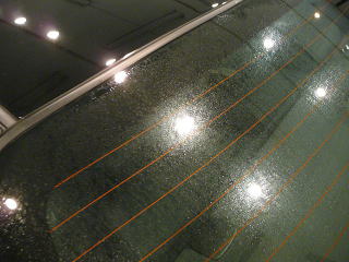 ![]() リアガラスも雨染みが付き始めています このまま放っておくとどんどん激しくなり 乾燥した状態でも目立つようになります |