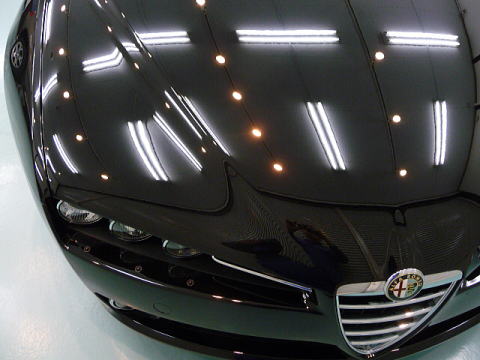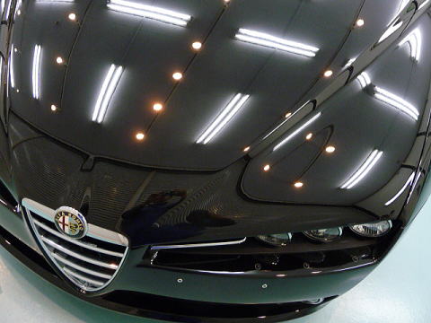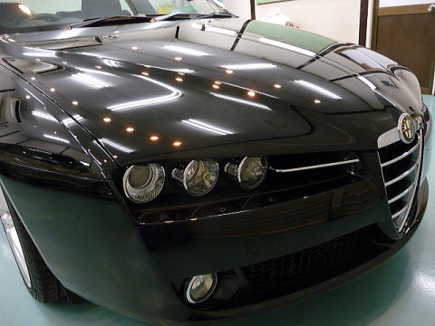 全体に付き始めていたスクラッチ傷をきれいに除去し、黒々とした陶器のような艶が復活 ちょい悪の顔ともマッチして独特のアルファらしい色気が倍増です ブラックはメンテに気を使い大変ですがそれだけにきれいな状態での感動もひとしおだと思います どうか長く大切になさってくださいませ ご利用誠にありがとうございました |