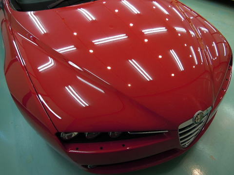 下地磨き完了いたしました しつこい雨染み、洗車キズ、シャンプー染みもスッキリ除去! 真っ赤なアルファレッド復活です!! この後、、 室内温度20度以上でのボディコーティング、 ホイールコート、室内清掃、細部処理と続きます 下地作り・磨きについて コーティング剤と施工環境について |