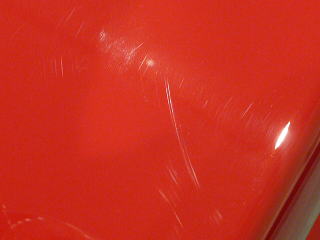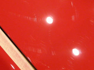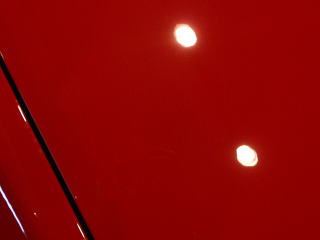 塗装の状態は、雨染みもほとんど見られず良好な状態を保っておられます 実際には傷の目立ちにくい赤ということもあり一般的には気になるほどではないかもしれませんが、 全体的にやや洗車傷の見られる部分もありますのでその辺りを丁重に改善していきます |