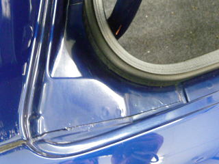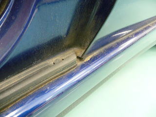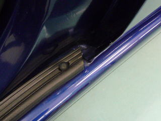![]() 通常Bピラーにあるような 黒い艶あり樹脂製Aピラーも傷だらけ |