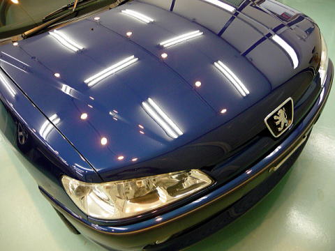 少々磨き甲斐がありましたが、スッキリ艶やかなボディが蘇りましたっ! この後、、再洗車、徹底した水切り&乾燥、 温度20度以上・湿度50%以下でのボディコーティング、 D−PROホイールコート、革シート清掃、室内清掃、細部処理と続きます ![]() 9月に入ってからすっきりと晴れません 曇りがちで今にも雨が降り出しそうな空模様が1週間ほど続いてます しかし室内は常時カラっとさわやか、コーティング作業に最適な環境を維持してます 当店では、全てのコーティングをコントロールされた最高の環境で行っていますので液剤の密着性も抜群! (DPRO推奨の施工温度は20゜C以上! それ以下の温度での施工は液剤の密着性が極端に劣ります) 最新のコーティング剤は性能の向上が著しいものの、 その性能を充分に発揮させるためには施工時の施工環境が限定されます 特に水分は大敵!! 当店では温度20度以上、かつ、湿度50%以下という施工環境の自主基準を厳守 季節や天候に左右されずコーティング剤の持つ最高のパフォーマンスを引き出します |