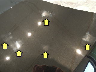 ![]() ルーフ後端の鳥フン これを埃の乗った状態でコンパウンドを使用して手で擦ると ボンネットのモヤモヤ傷のようになってしまいます |