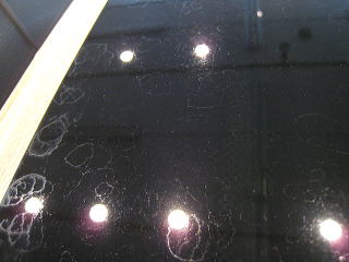 ![]() オーナーさまが、「ここの室内で見ると思っていた以上の激しい傷に驚きました」っと おっしゃっていたボンネットの洗車傷+雨染み+猫引っかき傷 そうなんです、磨きで傷を除去するといっても、、先ずはその傷があるかないか、 ある場合はどの程度の傷かが見える環境でないと的確な判断、施工は成り立ちません 室内でも蛍光灯だけでは決して傷や雨染みは見えません ![]() |
