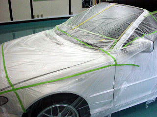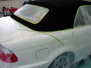 幌の撥水加工中