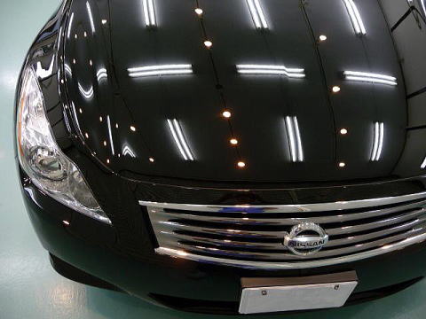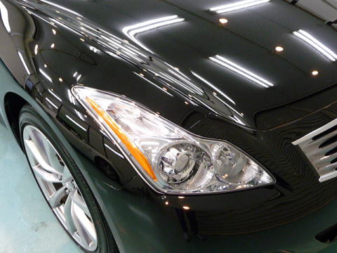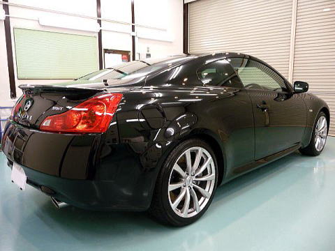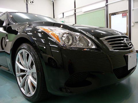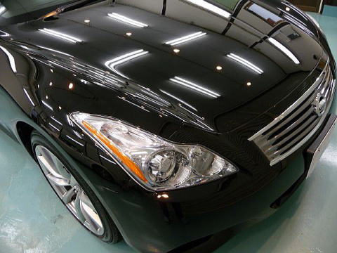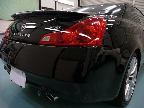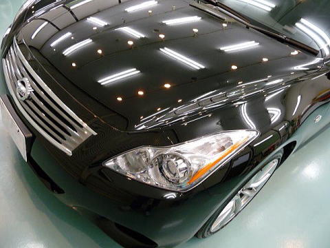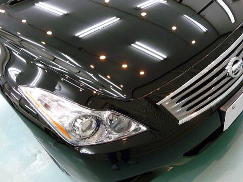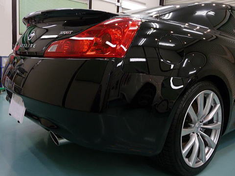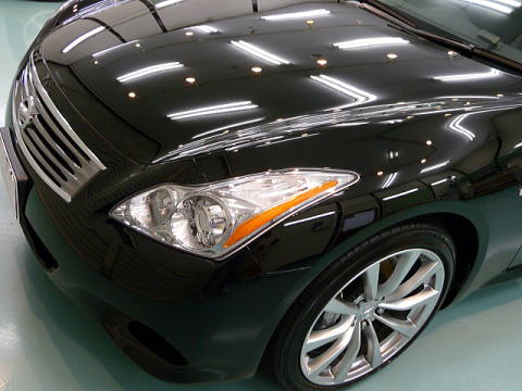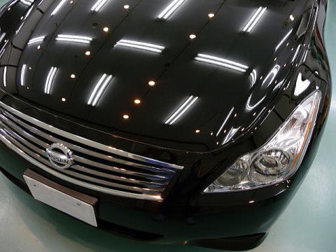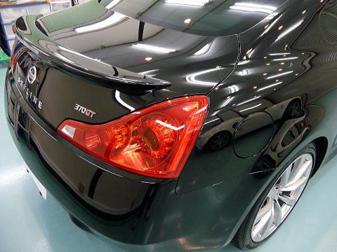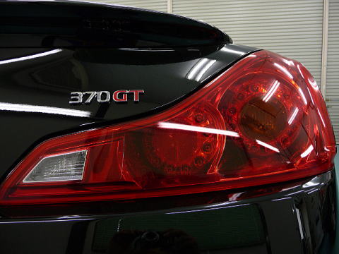 通常ソリッドのブラックといいますとどのメーカーのものも相当に柔らかく、ゆえに傷が非常に入りやすいです しかし、370GTの塗装は全てのカラーにおいてスクラッチシールドが標準で塗布されているためかなり硬くなっています そのため通常に比べ洗車傷が入りにくくメンテがしやすい反面、一度入った傷を除去するには少々手間がかかります |