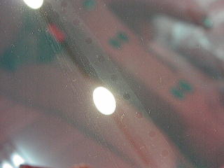 ![]() Fガラスの内側にはテープのあとや水拭きのあとが 残っていて前が見ずらそうです |