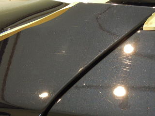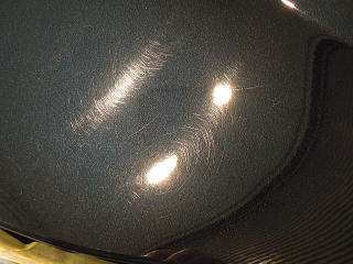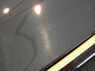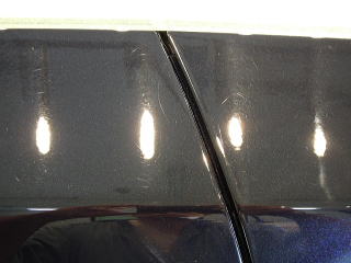 カーボンブラックは硬めな塗装、故に傷は入りにくいですが いったん入ってしまった傷はきついものが多く磨きにも少しコツが要ります このお車の場合は、洗車傷にプラスして以前の磨き(他社)で残されたバフ目がかなり目に付きます できるだけ塗装に優しい磨きを心がけつつ、キレのある塗装面に仕上げていきます ![]() |