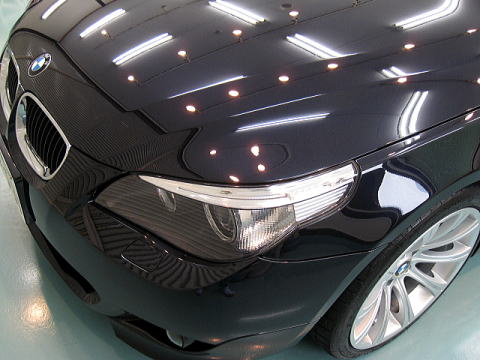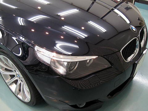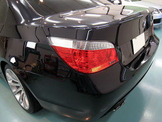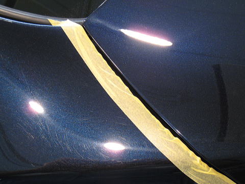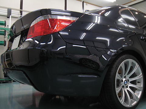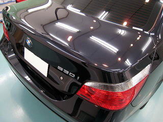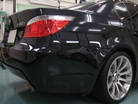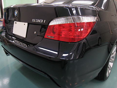 ![]() 左側(Cピラー下端)が磨き前、右側(トランク前端)が第一工程粗磨き後 |