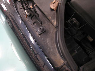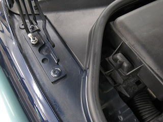 ![]() ボンネットのヒンジ部分に堆積した土埃 |