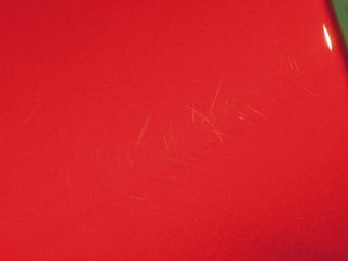 ![]() ボンネッットは特に丹念に磨かれているようですが それでも確実にスクラッチキズが見受けられます (画像が小さくて分かり難いですがライトまわりに見えます) |