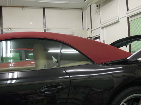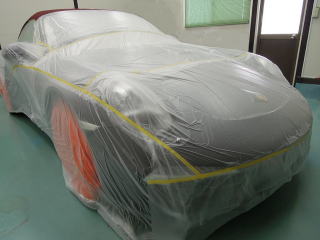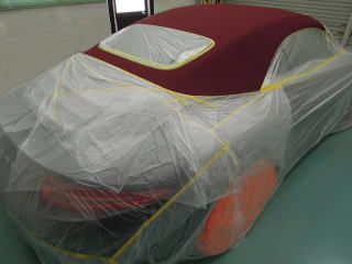 下地調整完了いたしました 3ヶ月経過の新車時のコート剤は親水性の物でしたので 思っていたより簡単に除去可能でした 今回お選びいただいたG’ZOX「ハイモースコート」は超撥水で硬いため この除去したコート剤よりも艶感がよく、数倍の耐久性があると思います! この後、、再洗車、徹底した水切り&乾燥、 室内温度20度以上でのボディコーティング、 幌の保護・撥水加工、窓ガラス下地磨き&超耐久撥水加工、ホイールコート、室内清掃、細部処理と続きます 下地作り・磨きについて コーティング剤と施工環境について ボディ塗装部の下地加工&ボディコート完了後、幌の保護・撥水加工を行うため 今度は幌以外を全て完全マスキングいたします マスキング後、「保護撥水加工-乾燥」を3回繰り返し行います ![]() |
