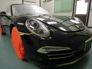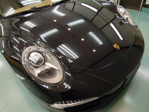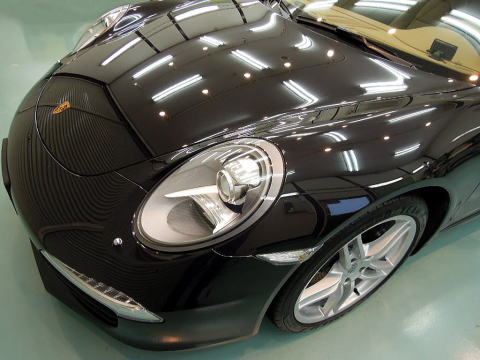 | ポルシェ911カレラ カブリオレのガラスコーティング施工例 ガラスコーティング コーティング カーコーティング 本日は最新991型911カレラ(ちょっとややこしいです)のカブリオレのご入庫です フロントのトレッドとホイールベースがかなり広がったとのことでしたので 全体のプロポーションがどうなのかと杞憂(きゆう)していましたが全く心配無用でした 屋内に入ると若干大きくなったような気はするものの 全体のバランスが良いせいか見紛う無き911です 特にこのカブリオレに関しては、 ルーフのラインがとてもスムースにかつ低くなったため、クーペと比べても変わらないか むしろこちらの方がスポーティでカッコイイのでは?と思うほどです 先代の997型までは確実に進化をして来たものの、 どことなく空冷時代のレトロ感のようなものが残っていたような気がしますが この991型では、ここそこに垣間見える細かな改良部分を通してそれが払拭され 完全に新世代911になったような印象を受けます トランクは電動オープンへと進化 ![]() ![]() ついに、あの見た目少し無骨だったエンジンは見ることができなくなりました ![]() この低いルーフのラインがとても美しい!! ![]() ![]() パナメーラのようなセンターコンソールのデザインが新鮮 ![]() キーも新世代ポルシェ ![]() 先ずはマスキングを施し、納車時のコート剤除去と若干の洗車傷除去を行います ![]() ポルシェ911カレラ カブリオレのガラスコーティング施工例 ガラスコーティング コーティング カーコーティング |