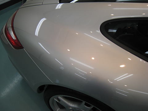塗装の状態はといいますと、、 WAXがよくかかって水はじき抜群な状態ですが洗車傷までは隠せません 屋外や屋内でも蛍光灯のみの光では見えないと思いますが実はビッシリの渦巻き傷 きついスクラッチ傷は少ないものの渦巻き状の洗車傷が全体に入り本来の艶を鈍らせています 当然ですが、この洗車傷を除去すればより一段と「つるピカボディ」に生まれ変わること間違いなしっ! |