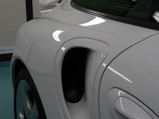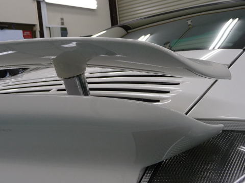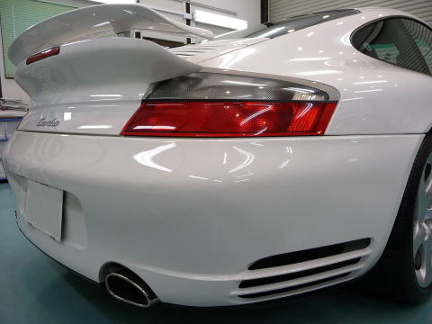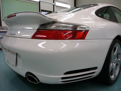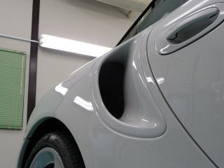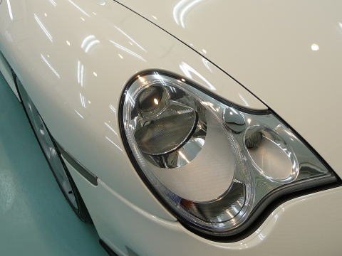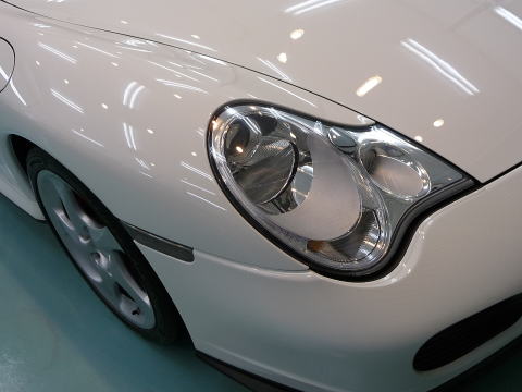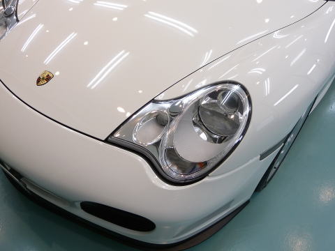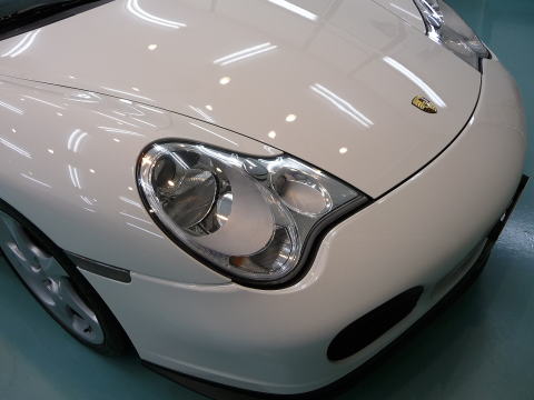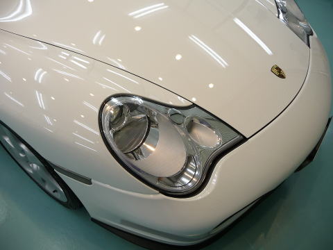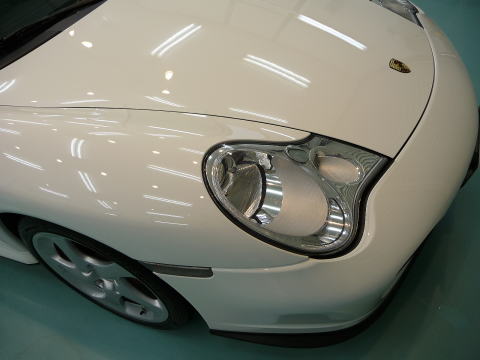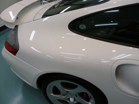 磨き、完了ですっ! キャララホワイトのとろ〜んとした新車以上の色艶がゾクゾクさせますよ! この後、、再洗車、徹底した水切り&乾燥、 温度20度以上・湿度50%以下の室内環境でのボディコーティング、 窓ガラス撥水加工、ホイールコーティング、、室内清掃、細部処理と続きます ナンバープレートなどもコーティングいたします 特に冬場のこの時期(12月)に注意が必要なのは湿度よりも温度 通常、温度管理を行わない室内は、10゜〜15゜と寒くコーティング作業には不向きです 最新のコーティング剤は性能の向上が著しいものの、 その性能を充分に発揮させるためには施工時の施工環境が限定されます 当店では温度20度以上、かつ、湿度50%以下という施工環境の自主基準を厳守 季節や天候に左右されずコーティング剤の持つ最高のパフォーマンスを引き出します |
