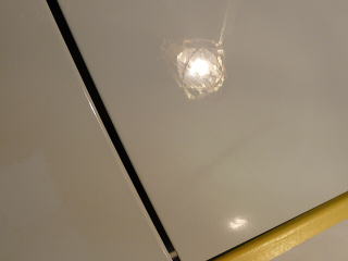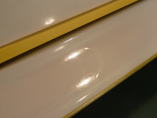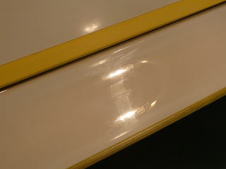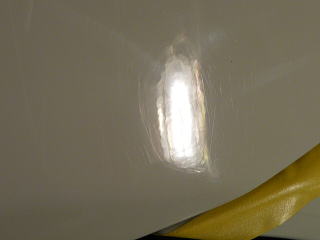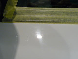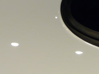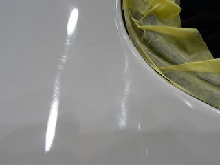 さて、塗装の状態を見ていきましょう! 白は一見きれいに見えてもよ〜〜く細部を観察していくと意外に傷や曇りが多いものです サイドドアの下部とか、ステップとかパッと見、あまり目立たない部分でも、 きちっと磨いて傷を除去し塗装の持つ本来の艶を出してやれば車全体が一段と締まり美しく見えること間違いなしです! |