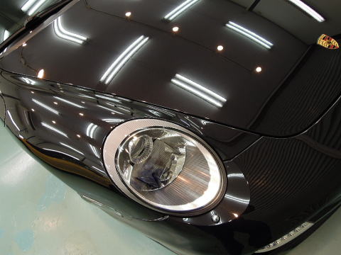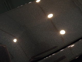 種々雑多なキズ、丹念に丹念に取り除きました! 黒っぽかったり、茶色っぽかったり、変化に富む本来のパサルトブラック復活です この後、、再洗車、徹底した水切り&乾燥、 室内温度20度以上でのボディコーティング、 ホイールコート、室内清掃、細部処理と続きます 下地作り・磨きについて コーティング剤と施工環境について |