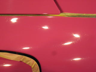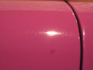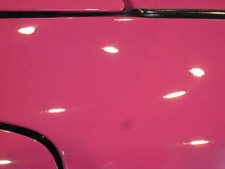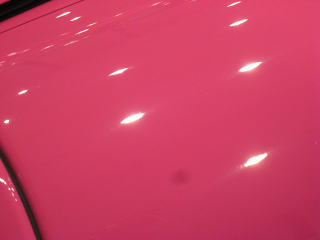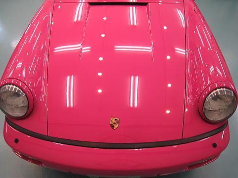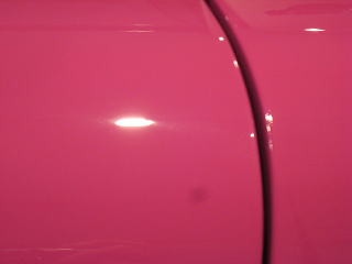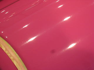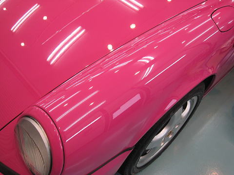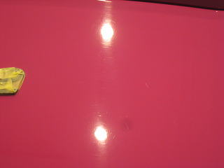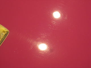 塗装の状態は年式相応に洗車傷や深いスクラッチが入っているという状態です 年式(’92)やクリア層なしのソリッド色であるということを考慮するとあまり深い磨きは好ましくないと考えます ウレタンバフで時間をかけ少しずつ様子を見ながらじっくりと磨いていきます 最新の硬いクリア層をもつ水性塗料のような磨き方は絶対にできません 深いスクラッチはいくらか残ると思いますが、カーマインロット(正式純正カラー名)本来の色艶を復活させられればと思います |