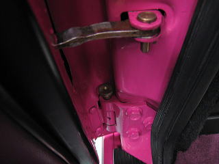 ![]() ドアヒンジの油汚れ |