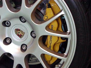 ![]() 6ピストンで550psを止めます ポルシェ特許のモノブロックキャリパーですっ! |