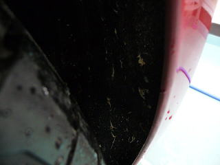 ![]() リアタイヤハウス内側 消音のためのフェルト素材はゴミが引っかかりやすいです |