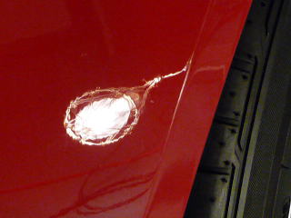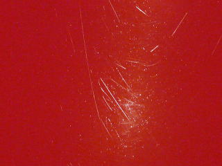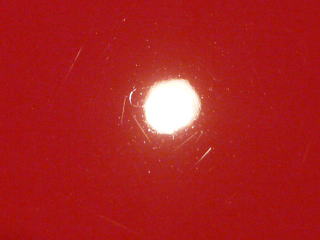 ![]() 左の画像と同じ場所なのですが、 傷が無くなり赤一面の画像となってしまうため 意図的にライトを写りこませています |