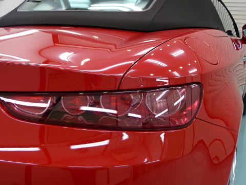 さて、、肝心の塗装の状態ですが、 下の画像からも分かるとおり、リアライトやバンパーの様子から以前は洗車機に入れられていたのでは? しかし、ボンネットやトランクの傷はそれほどでもありません またサイドはドアノブの上に位置するキャラクターラインから上は傷が極端に少ないですが、 下はかなりの洗車傷が見て取れます それともう一つ、リアのエンブレムのまわりには汚れを取ったあとの引っかき傷が残っています ゆえに、、普段、洗車機で洗われていた個体が ボンネット、トランク、ドア上側等の目立つ部分だけ簡単に磨かれた状態だと推測いたします |