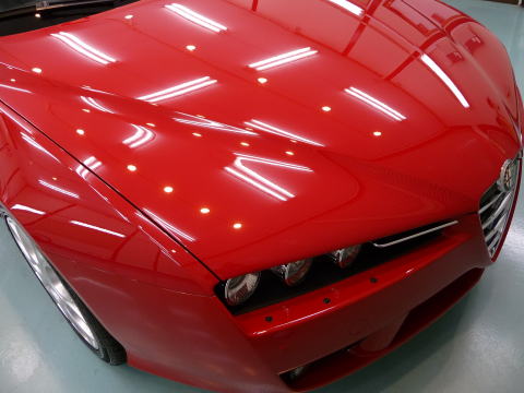 磨き、完了です! 目にも鮮やかなアルファレッドが蘇りました この後、、再洗車、徹底した水切り&乾燥、 温度20度以上・湿度50%以下の室内環境でのボディコーティング、 窓ガラス撥水加工、ホイールコーティング、、室内清掃、細部処理と続きます ナンバープレートなどもコーティングいたします ![]() ちなみにコーティング当日の天気は一日中雨、雨、雨 外の気温は9.5度、湿度70%でコーティング作業には最悪の条件 しかしご安心くださいませ、室内は空調コントロールしていますのでご覧の通りの好条件(上画像) 特に冬場のこの時期(12月)に注意が必要なのは湿度よりも温度 通常、温度管理を行わない室内は、10゜〜15゜と寒くコーティング作業には不向きです 最新のコーティング剤は性能の向上が著しいものの、 その性能を充分に発揮させるためには施工時の施工環境が限定されます 当店では温度20度以上、かつ、湿度50%以下という施工環境の自主基準を厳守 季節や天候に左右されずコーティング剤の持つ最高のパフォーマンスを引き出します |