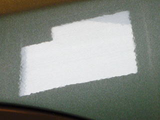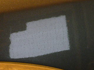 ![]() 左前フェンダー 上から下へと流れながら染みとなった様子がうかがえます |