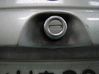 ![]() リアハッチの開閉ボタンまわりの油汚れ |