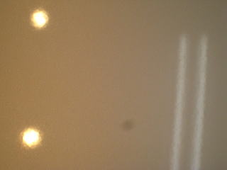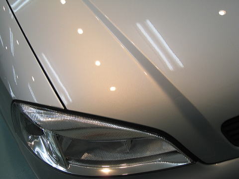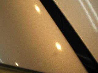 ![]() ボンネット 雨染みが重なり合って照明の映りがぼやけています |