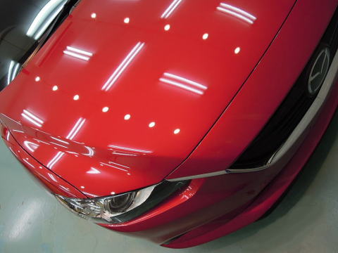 下地磨き完了いたしました! プレミアムカラーにお選びいただいたコート剤は、これも最高峰のG’ZOX「ハイモースコート」 ハイモースコートは抜群の耐久性や色艶のみならず、防汚性や防油性も圧倒的で洗車も楽々 この「ハイモースコート」を一度体感してしまうと、もう他のコート剤へは戻れません お値段は高いですが、それ以上の価値を多くのオーナーさまが認めている その他全てのコート剤とは一線を画す逸品です!! この後、、再洗車、徹底した水切り&乾燥、 室内温度20度以上でのボディコーティング、 窓ガラス下地磨き&超耐久撥水加工、D−PROホイールコート、室内清掃、細部処理と続きます 下地作り・磨きについて コーティング剤と施工環境について |