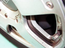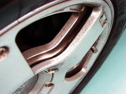 オフロード走行時のダメージを考慮して、元のホイールの上にもう一枚かぶさった格好です。 |