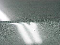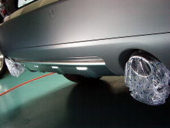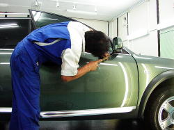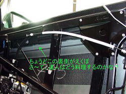 あちゃ〜、ドアミラー斜め下のプレスライン上!しかも、裏側にはラインに沿ってスチールプレートがピッタリと張り付いているー ![]() |