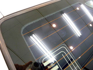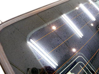 ![]() 窓ガラスの雨染み、油膜(リア) まだあまり目立ちませんが、それでも雨天時には 視界に影響があるはず このまま放っておくと加速度的に悪化します |