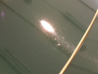 ![]() 最も雨染みが深いルーフ中央部 |