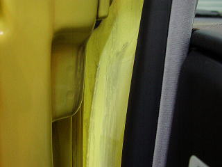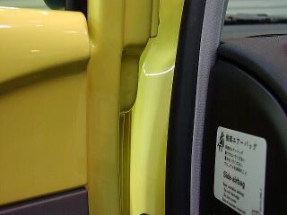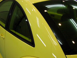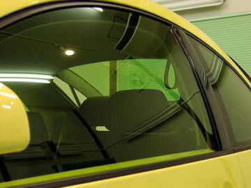 ガラス面に黄色いフィルムを貼られています。
