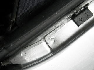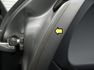 ![]() ルーフを開けた時のAピラー上部(Fガラス上部) |