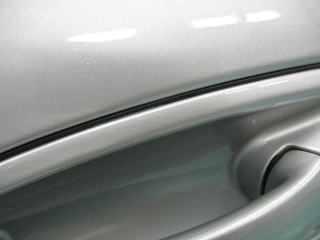 ![]() 右ドアノブ周りのWAXかす ほんの些細な汚れではありますが 意外と全体の印象を古臭くしてしまいがちです |