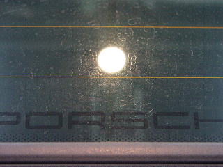 ![]() リアガラス オープンカーの後方視界ってあまりよくない ですよね。こんな雨染みがあるとなおさらです(~_~) |