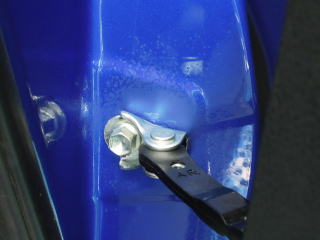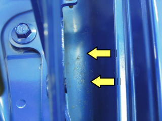 ![]() ドアヒンジのグリス飛び |