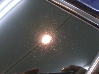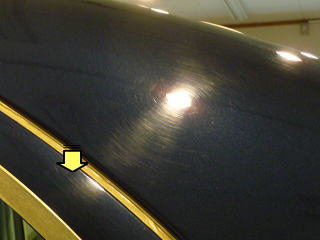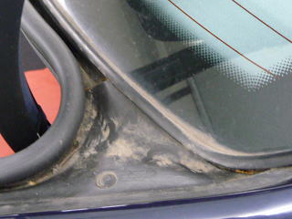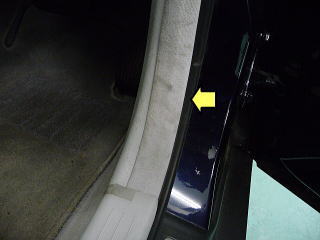 ![]() 左Cピラー 細い窓枠(矢印部分)も傷がびっしり |