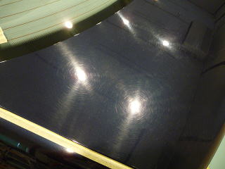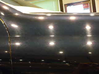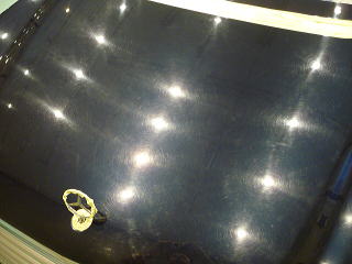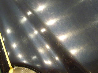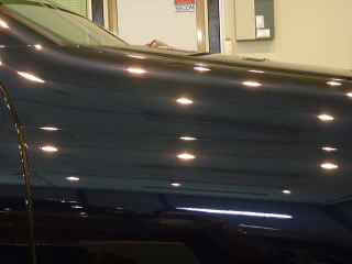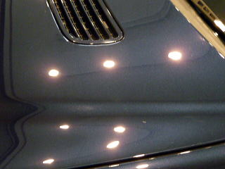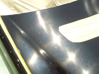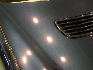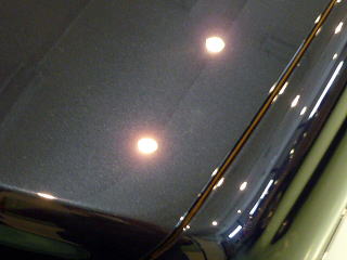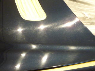 そして、塗装面の状態ですが、、一目瞭然、ご覧の通りかなり深刻な状態 比較的硬い紺のメタリック塗装なのですが、 洗車機により痛々しいほどのダメージを負っており、お車から悲鳴が聞こえてきます さらに、画像では見えませんが、上面を中心に白いペンキミストの付着がみられますのでこれを除去後磨き開始です! |