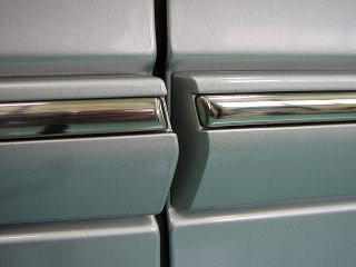 まずは日常の洗車では取りきれない、おそらく数年間徐々に 蓄積してきたであろう細かな部分の汚れを落としていきます。 それらは水分の残りやすい部分です。 ほんの些細な部分かもしれませんが、これが以外や最後には 全体の印象をカチっとしたものに見せる大きな要因となります。 |