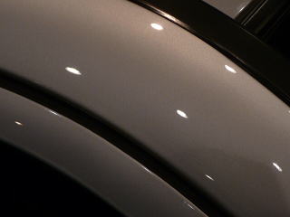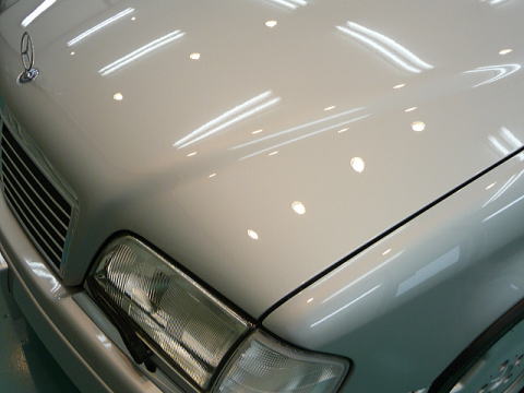 普段の洗車では落ちないしつこい水あか、本来の色艶を鈍らせていた洗車傷・雨染みを除去完了! もちろん塗装面に突き刺さっていた鉄粉もきれいに取り除いています この後、、再洗車、徹底した水切り&乾燥、 温度20度以上・湿度50%以下でのボディコーティング、 D−PROホイールコート、室内清掃、細部処理と続きます ![]() 外はジメジメうっとうしい天気でも 室内は常時カラっとさわやか、コーティング作業に最適な環境を維持してます 当店では、全てのコーティングをコントロールされた最高の環境で行っていますので液剤の密着性も抜群! (DPRO推奨の施工温度は20゜C以上! それ以下の温度での施工は液剤の密着性が極端に劣ります) 最新のコーティング剤は性能の向上が著しいものの、 その性能を充分に発揮させるためには施工時の施工環境が限定されます 特に水分は大敵!! 当店では温度20度以上、かつ、湿度50%以下という施工環境の自主基準を厳守 季節や天候に左右されずコーティング剤の持つ最高のパフォーマンスを引き出します |