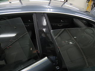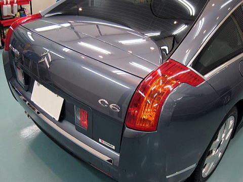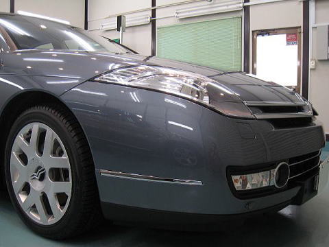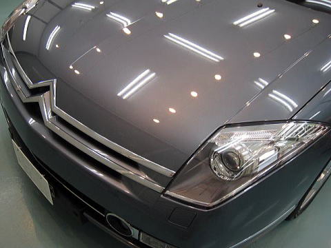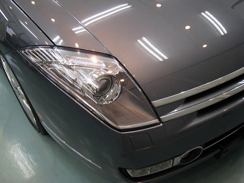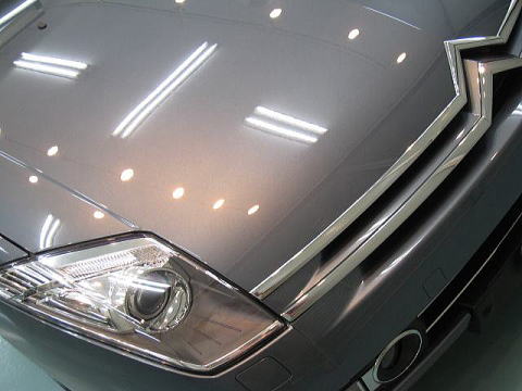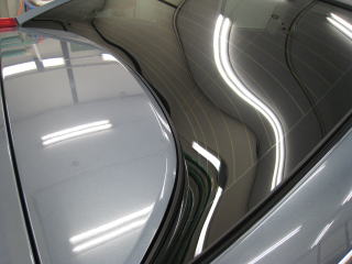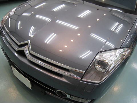 ![]() 新車の場合は目に見えなくとも保護フィルムの糊が 残っている場合が多いので必ず軽く磨きます 同時にライトの映り込みも改善されています |