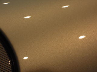 ![]() 塗装の状態は、ボンネット、ルーフ、リアハッチの上3面が少々荒れた印象です 洗車傷と雨染みが激しい上に水あかが重なった状態で よく見るとコート剤かWAXなどをかけた通りに縦じま模様となっています 先ずは工程上で最も重要な傷、汚れをきれいさっぱり磨き落すことから始めます 見た目でガサガサっ、ボソボソっ、とした印象の状態を、水を打ったようなツヤツヤ、しっとりした印象にいたします |